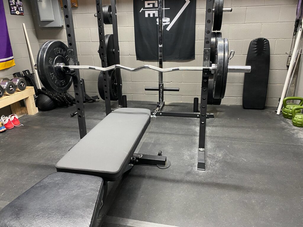 The rackable curl bar is pretty self-explanatory. It’s an EZ curl bar that can be racked in your squat rack. The ‘don’t curl in the squat rack’ mantra does not apply to this bar.