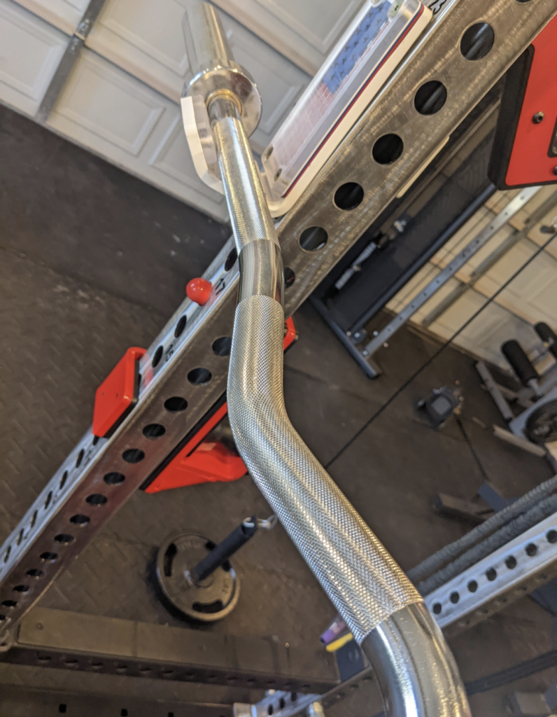 The Titan Rackable Curl bar gives you knurling throughout all grip points, which is an excellent addition. Bars like the REP rackable curl bar are only knurled at the ergonomic grips. If you wanted to keep the Titan bar on the rack for some wide grip movements, you have knurling to work with.