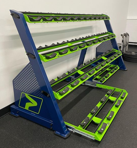 Some new pieces brought into the space were the Prime Fitness Functional Trainer, the Prime Fitness dumbbell rack, an American Barbell dumbbell set, a custom coaches cart from Williams Strength, a vertical barbell rack, and floor storage from Oak Club.