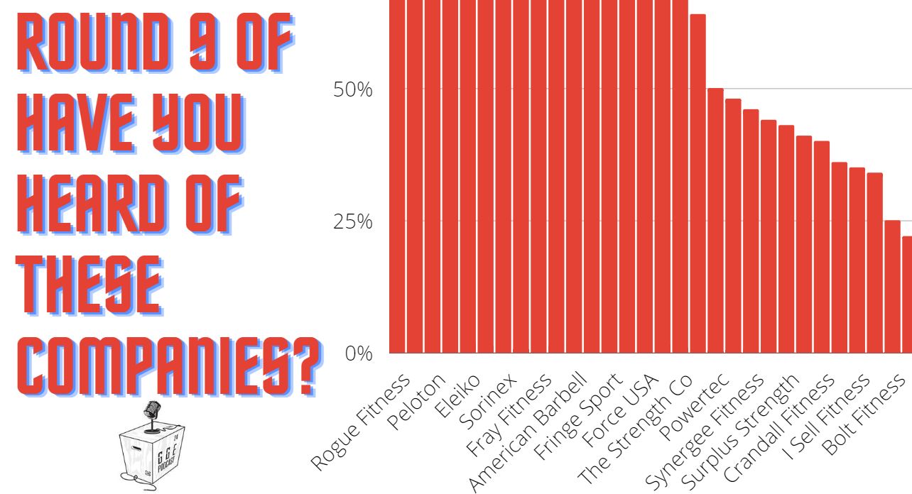 As expected, Rogue, Titan, and REP are at the top of the list. Eleiko and Peloton were added to this survey for the first time, and both had extremely high recognition.