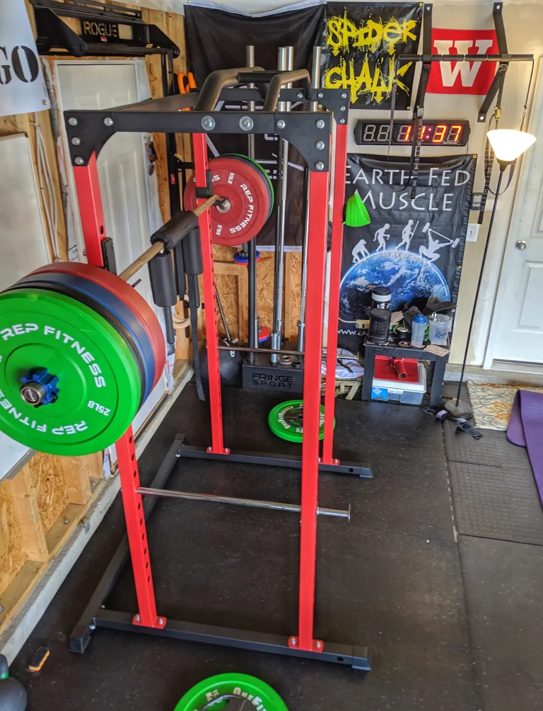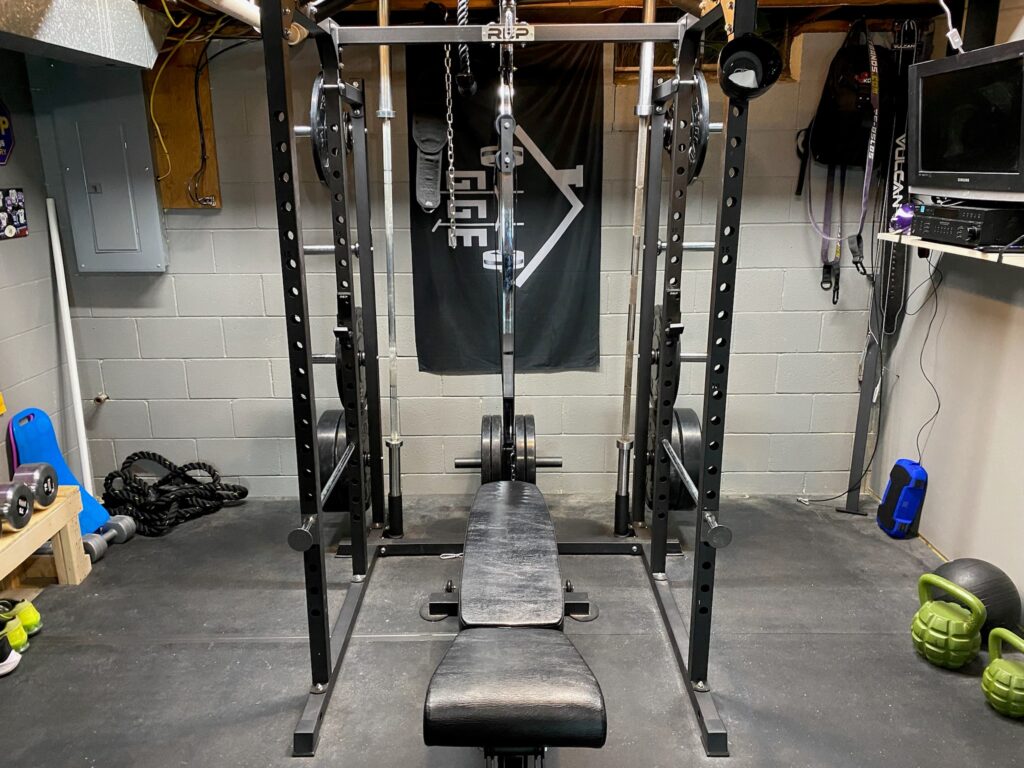 A rack does not need to cost you more than your mortgage payment. It would be easy to spend more than the cost of this entire gym on a rack when the truth is you don’t need to. The PR1100 from REP is a rack that Jake and I have both had (and I still use). It has a capacity of over 700lbs, which is plenty enough for most lifters. It also gives you good upgrades when you’re ready to add a cable set-up.
