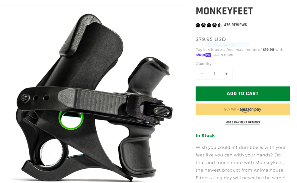 Monkey Feet come from the company Animal House Fitness. It’s not quite the household name in the home gym community, but the Monkey Feet do seem to continue to grow in popularity. It is a simple device that allows you to add weight (via dumbbells) to the bottom of your foot to perform countless exercises.