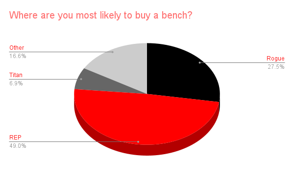 We asked the community which company you would or have bought a bench from. REP was the easy winner. REP is the most popular company for adding a bench to your home gym, which is why we recommend many options from REP when buying a bench. They provide solid options at every price point and have earned the trust of the home gym community. Get RXd has started offering some nice bench options at reasonable prices, which we’ll get to.