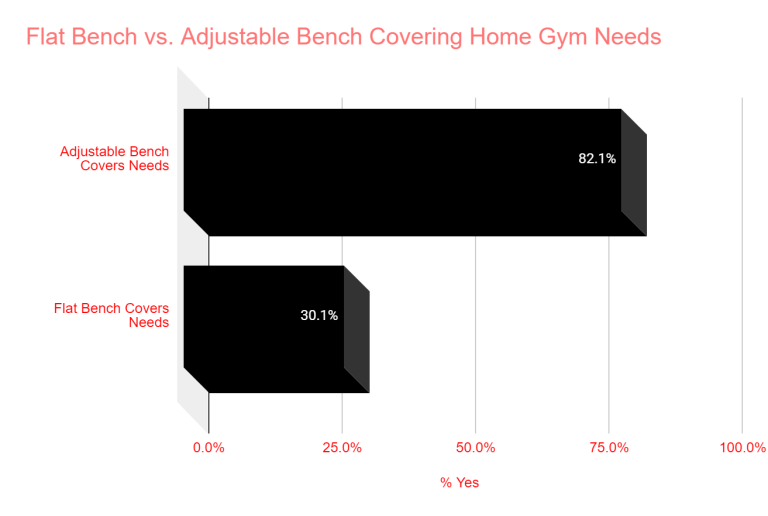 In addition, we have some data on the subject. Just 30% believe that an adjustable bench covers their home gym needs, while 82% think an adjustable bench does.