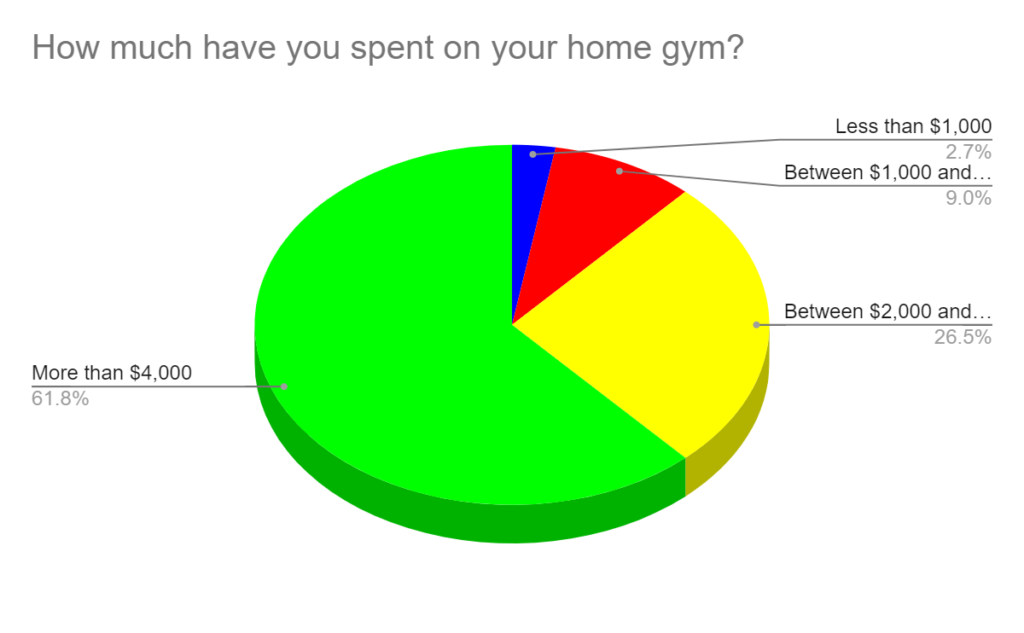 Almost 62% have spent over $4,000 on their home gyms.