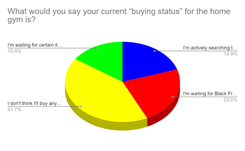 42% do not think they’ll buy for their home gym soon & 23% are waiting for Black Friday Deals