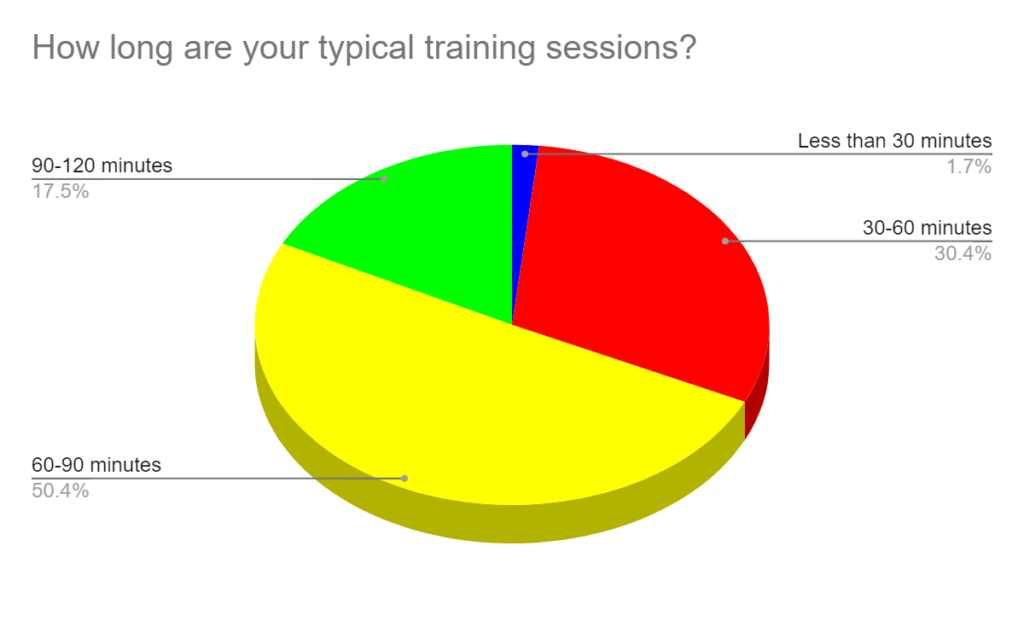 Over 50% typically workout for 60-90 minutes at a time.