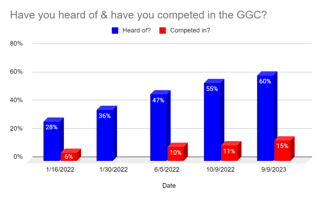 Garage Gym Competition Awareness continues to go up among those answering these survey questions.