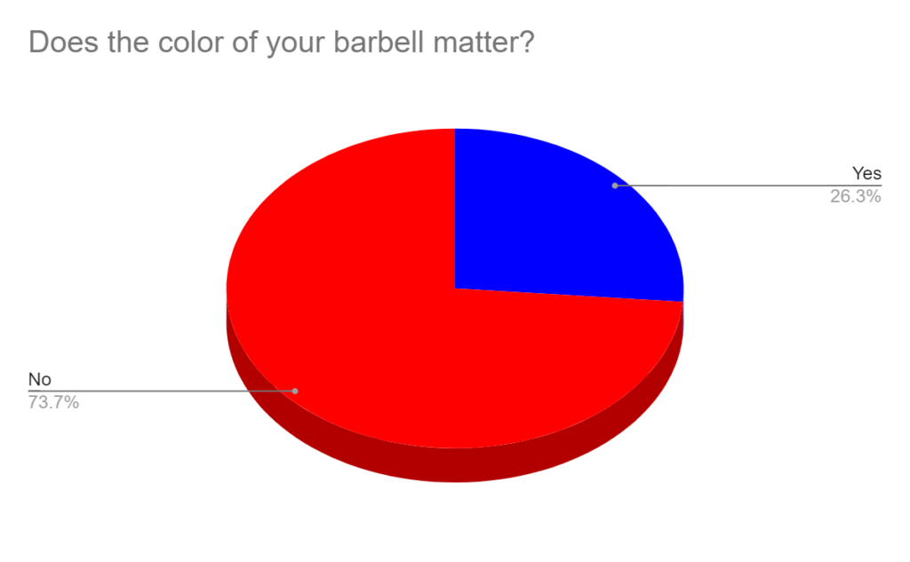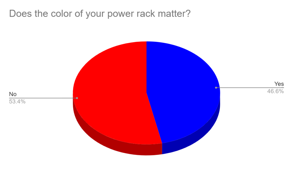 While only 47% admitted to the color of their power rack mattering (compared to 26% caring about the color of their barbell), almost 60% said they’d be willing to pay a little more for the right color.