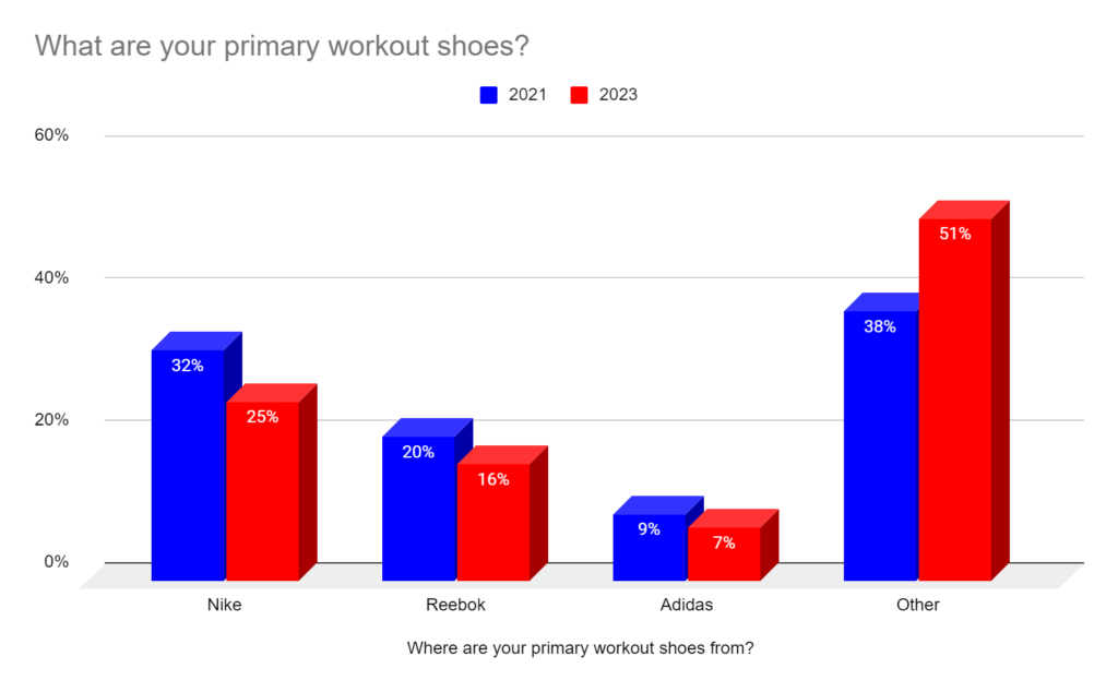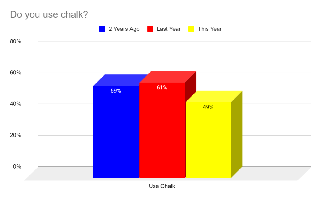 48.5% use chalk in their home gym. That’s down 19% from 2021.