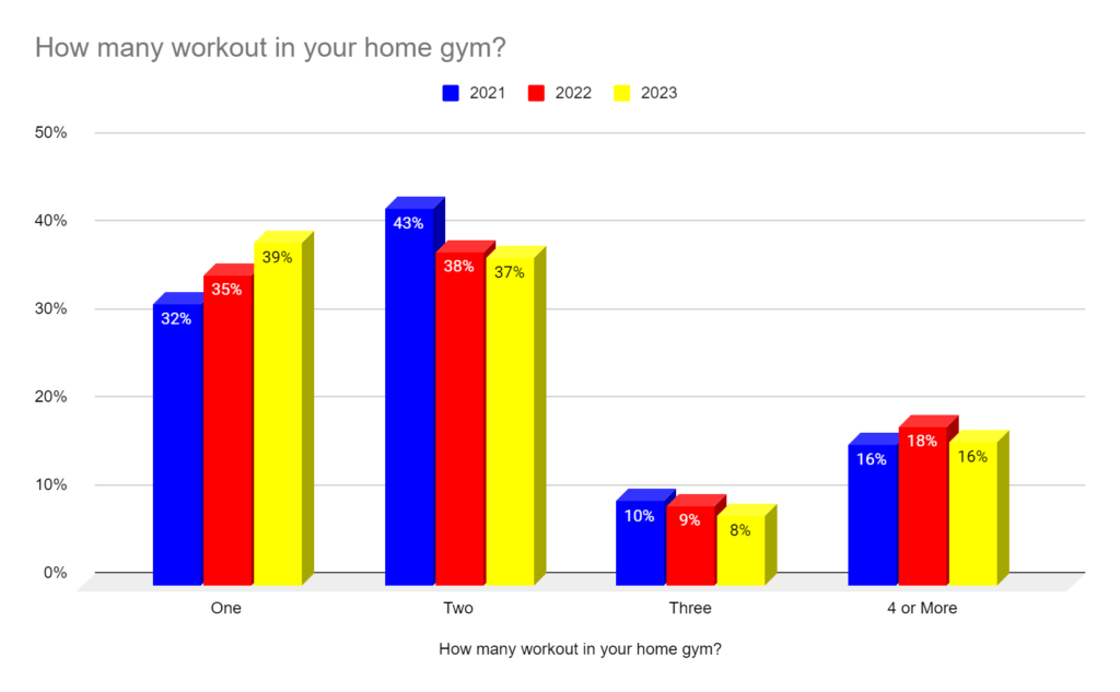- As you can see in the chart below, the number of people utilizing the home gym alone has been rising since 2021.