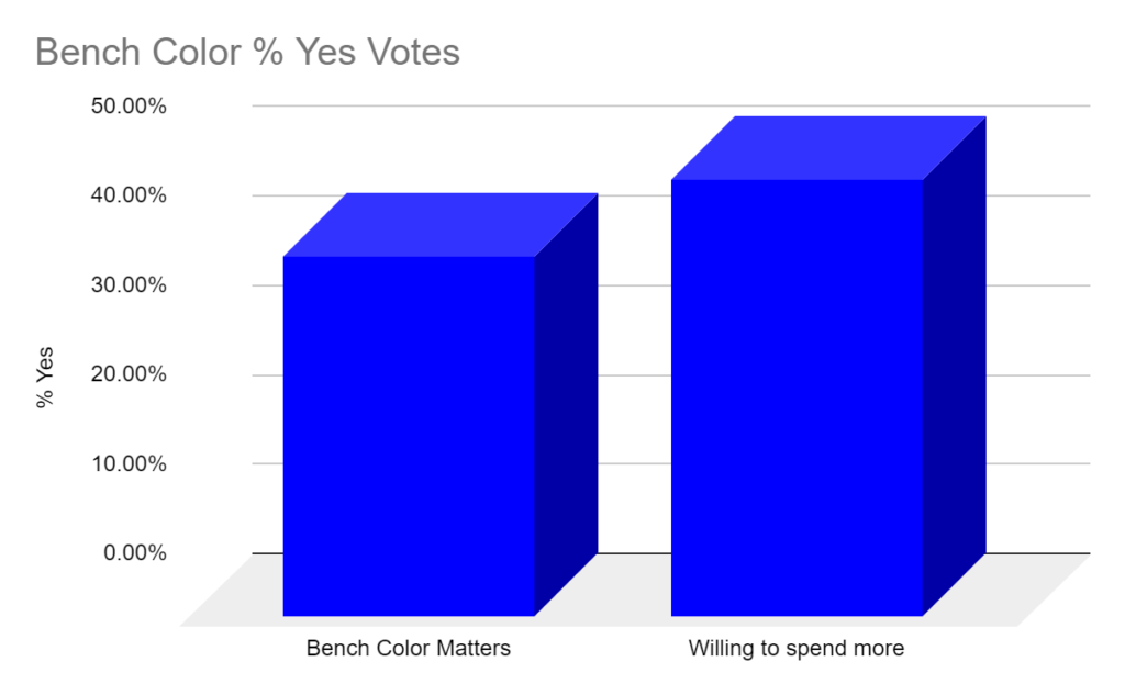 40% say that the color of their bench matters & 49% are willing to pay a little more for the right bench color.