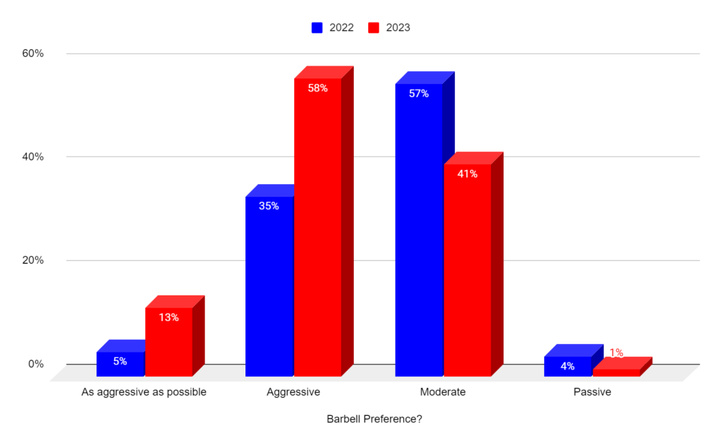 Many More Want Aggressive Barbell in 2022 vs. 2023.