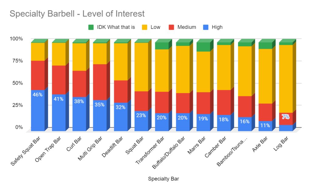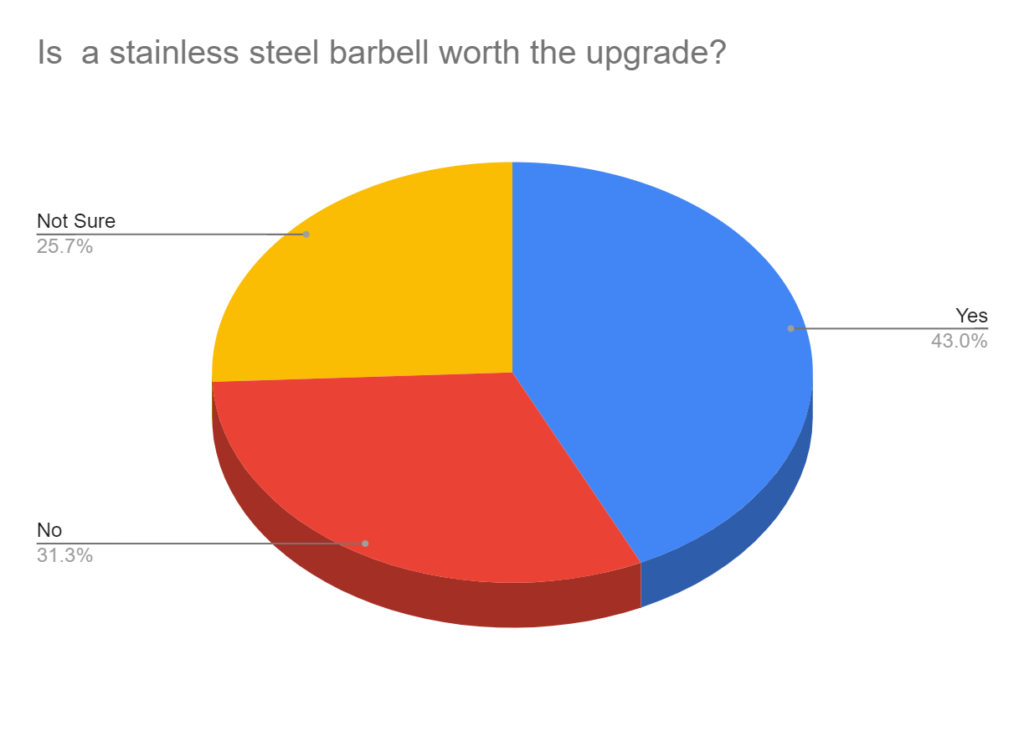 • 43% think the stainless steel upgrade on their barbell is worth it. That was 37% higher than the amount of “no” votes.