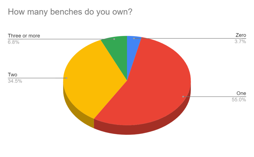 • In a separate poll (months later), 41% said that they see the need to own 2 benches within their home gym.