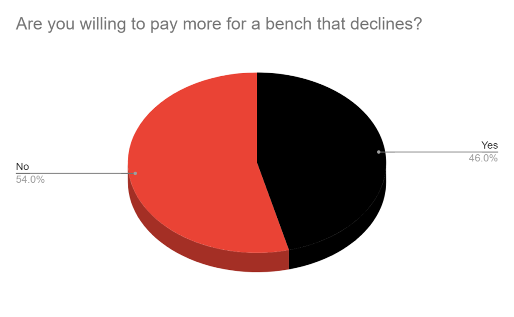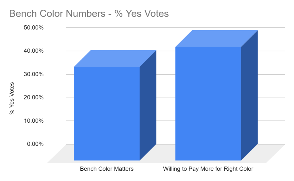 40% believe the color of their bench matters, and 49% are willing to pay a little more for the right bench color.
