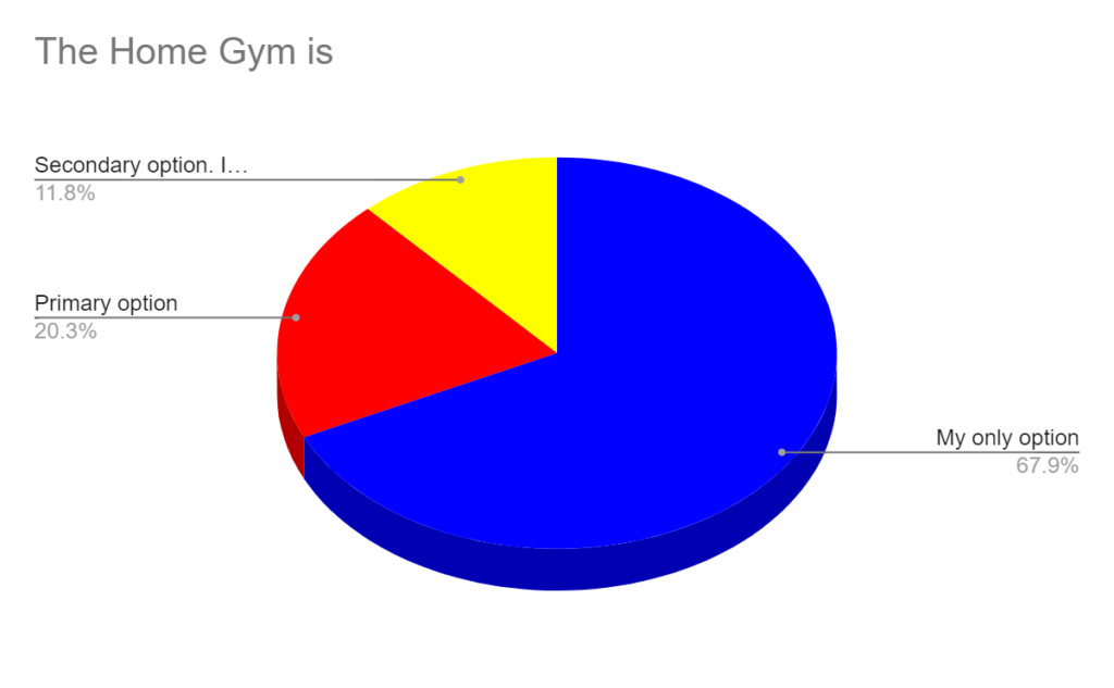 About 2/3 are using their home gym as the workout option. Another 20% use it as the primary option but go to a different gym.