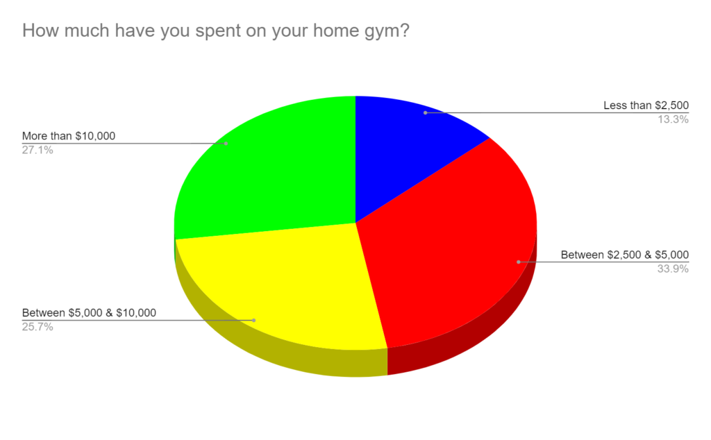 Over half have spent more than five grand on their home gym. Therefore, most are utilizing pretty complete setups, which may not be “the norm.”