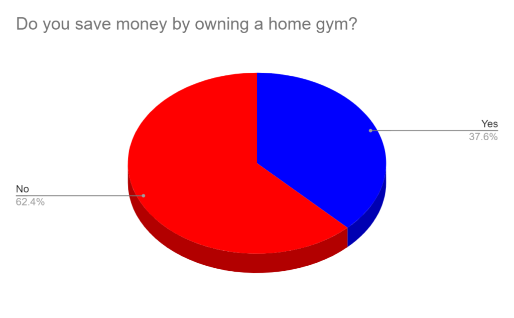 Only 38% save money by owning a home gym. This number has gone down considerably over the years.