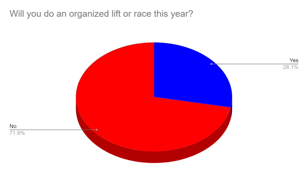 About 28% will do some organized race or lift this year.