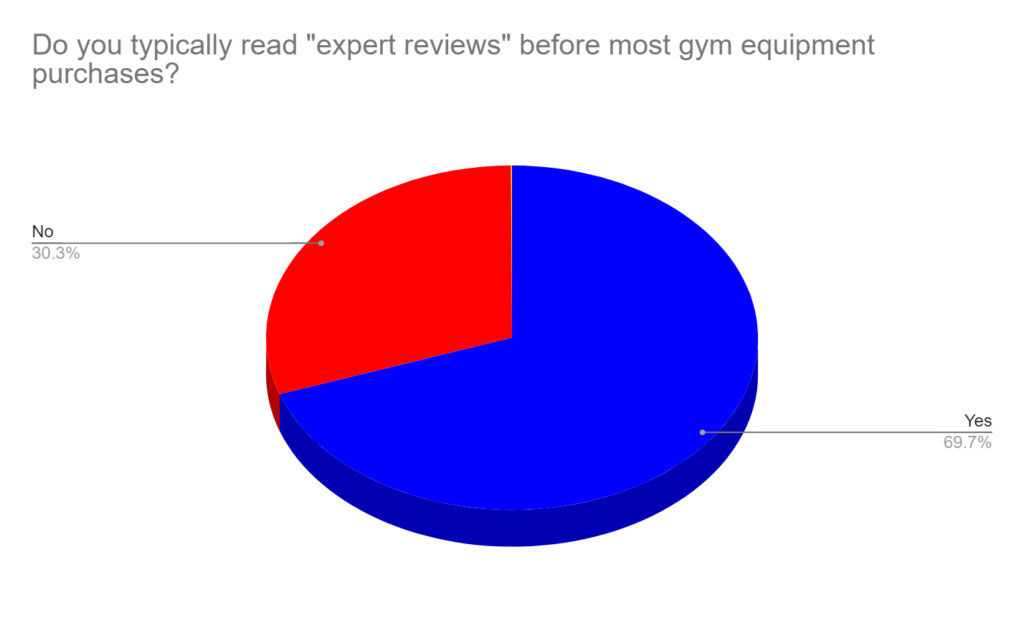 Nearly 70% of people typically read “expert reviews” before most gym equipment purchases.