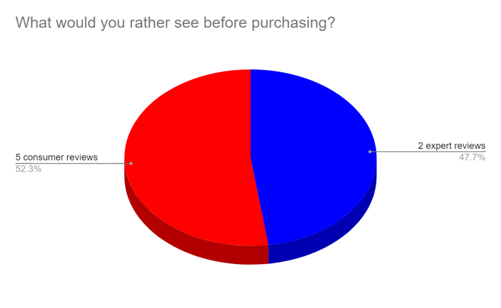 5 Consumer Reviews are seen as more important than 2 “Expert Reviews by 52%.