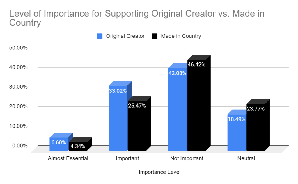 More importance is given to “supporting the creator,” but only 7% say “essential.”