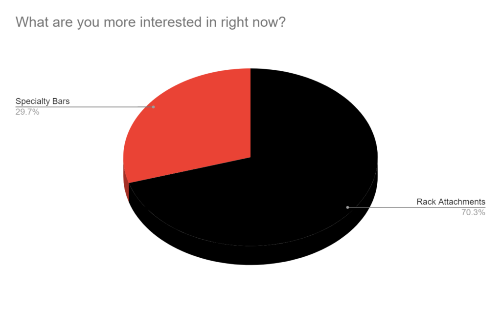 7/10 are more interested in Rack Attachments right now vs. Specialty Bars.