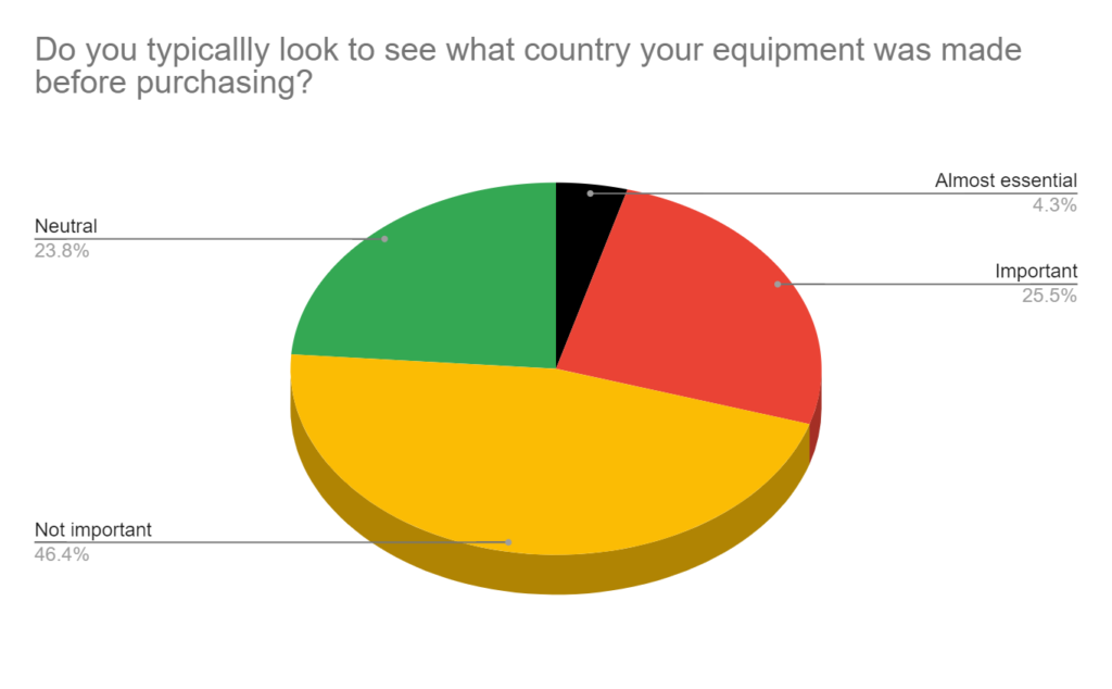 About 38% typically look to see what country their equipment was made before purchasing