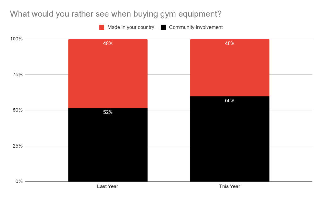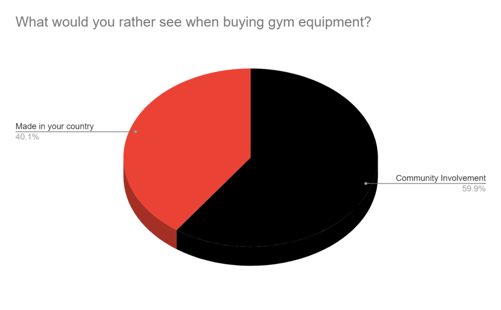 3/5 choose “Community Involvement” over “Made in Country” when buying gym equipment