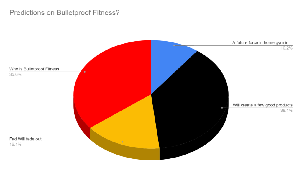 To start, the most popular answer regarding Bulletproof Fitness‘ future is that they will create a few good products with about 38% of the votes. Another 10% believe they’ll be a force, 16% fad, and another 36% does not know who BF is.