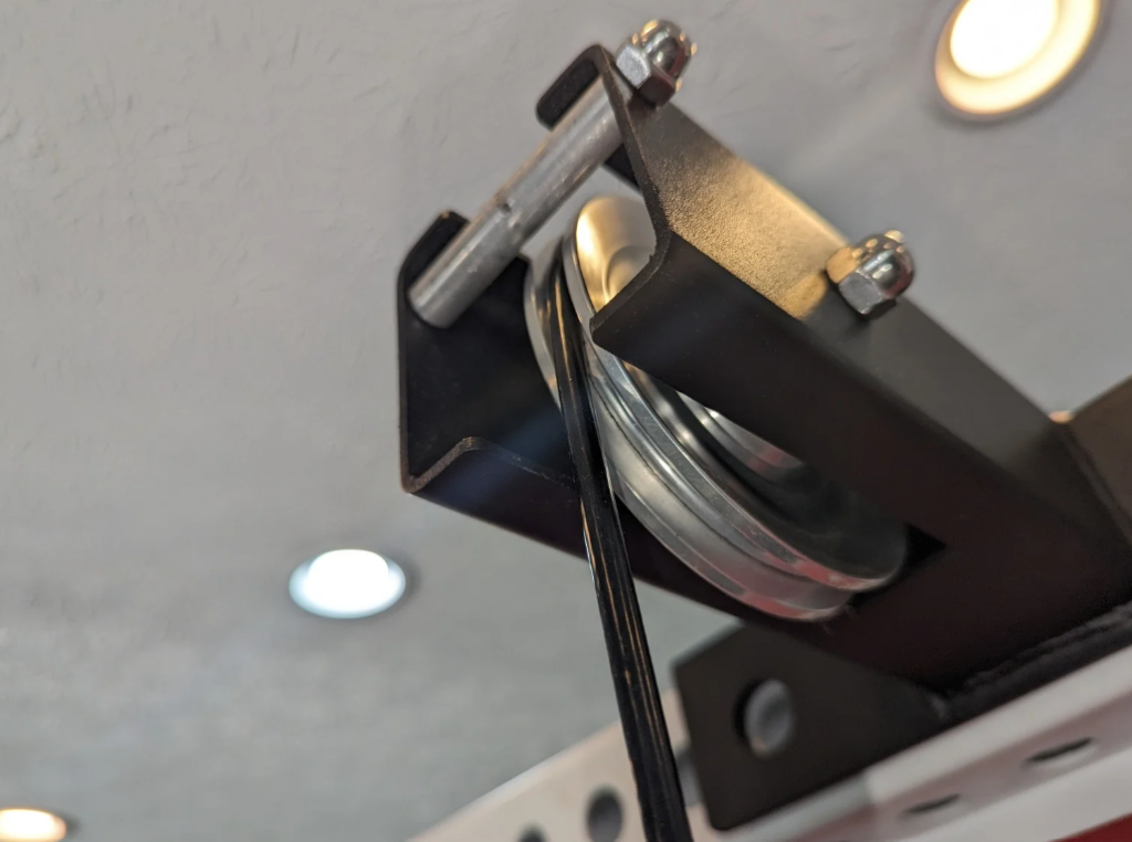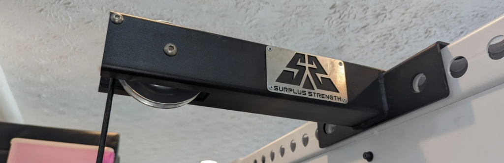 Surplus Strength’s Universal Pulley System is a rack attachment that mounts to your power rack and lets you perform cable exercises like lat pulldowns, tricep extensions, and rows.