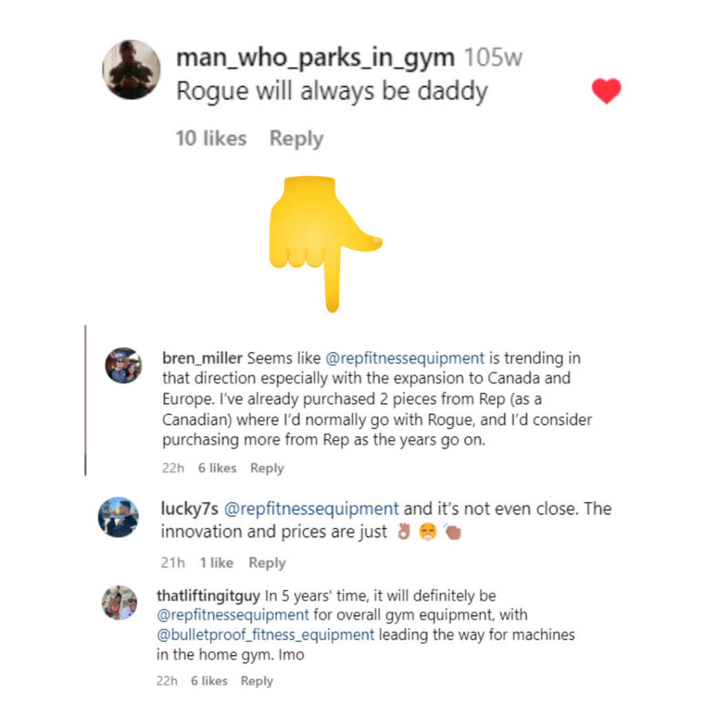 The four options this time around were REP, Rogue, Bells of Steel/Titan, and “Other.” The four companies mentioned seem to be the largest of those focused on supplying equipment to the core of this community.