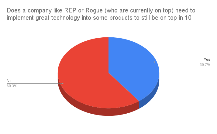 40% believe a company like REP or Rogue (who are currently on top) need to implement great technology into some products to still be on top in 10 years.
