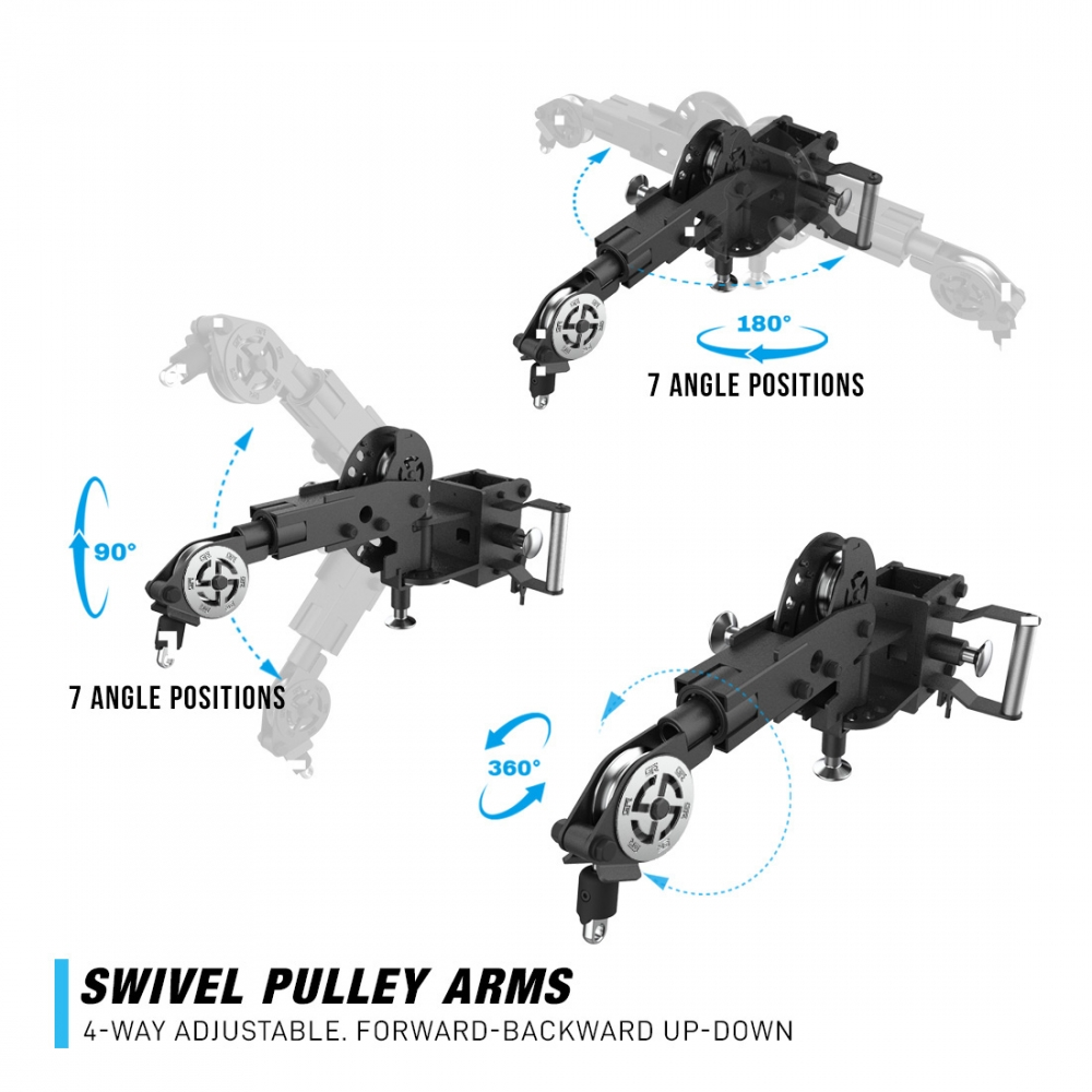 These include tornado arms that hook up to the pulley system. They swivel and include many other positioning options. They seem to be quite impressive!