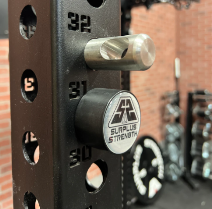 The VECHS Speed Pins from Surplus Strength feature a proprietary slot for attaching various carabiners, making them ideal for band exercises, Henny straps, belt squats, and more. Made from stainless steel, these pins offer superior strength and versatility compared to the aluminum version.
