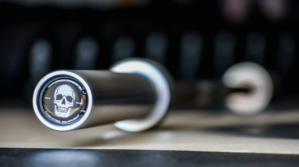 The Iron Skull Power Bar has been redesigned to enhance durability and performance. It features a 29mm diameter, a 1,500lb weight capacity, and aggressive knurling with a center knurl for improved grip. The bar is constructed with a stiffness greater than standard bars and has a tensile strength of 200,000 PSI, making it suitable for heavy lifting and rigorous training.