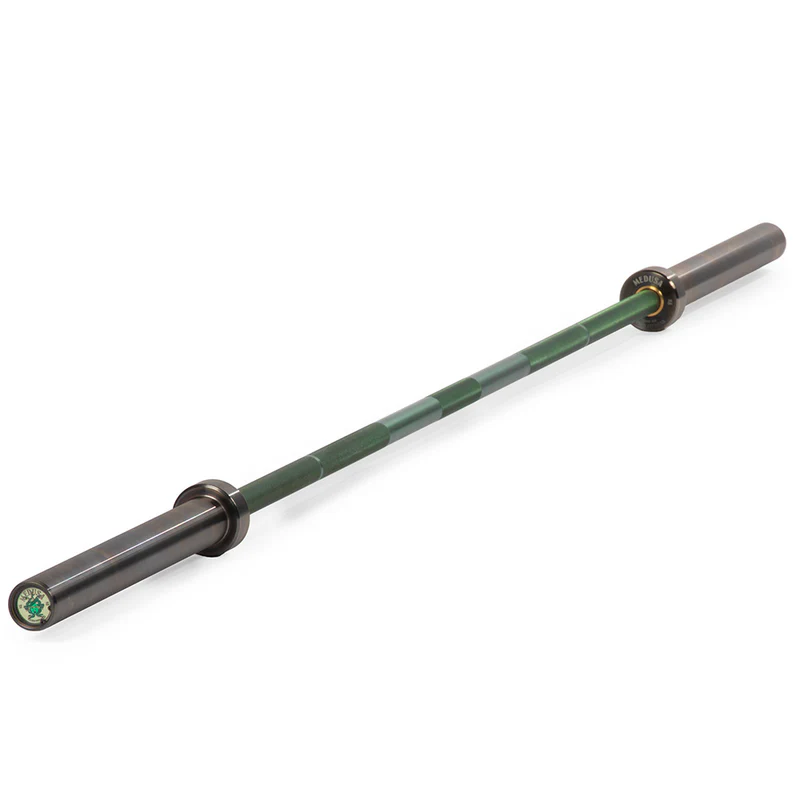 This limited edition Medusa Power Bar celebrates Medusa’s strength and determination. Its colorful endcaps feature her iconic gaze, while the 29mm shaft has a custom green Cerakote finish that mimics her serpent hair and adds protection against corrosion and impacts. The barbell also includes scratch-resistant graphite PVD weight plate sleeves for durability and bronze bushings for smooth rotation.