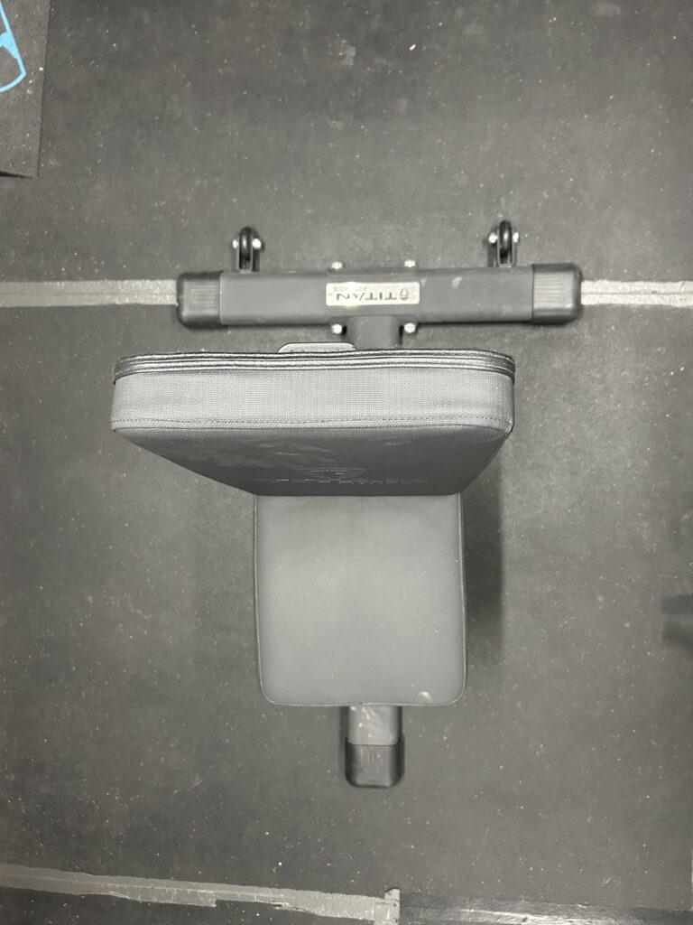 The pads are what you will find on most newer benches (the same that is on my REP wide pad). It’s a grippy firm padding with the Titan Branding embedded into it. The seat sits 18” off the ground and the back pad goes 19.5 inches up your back.