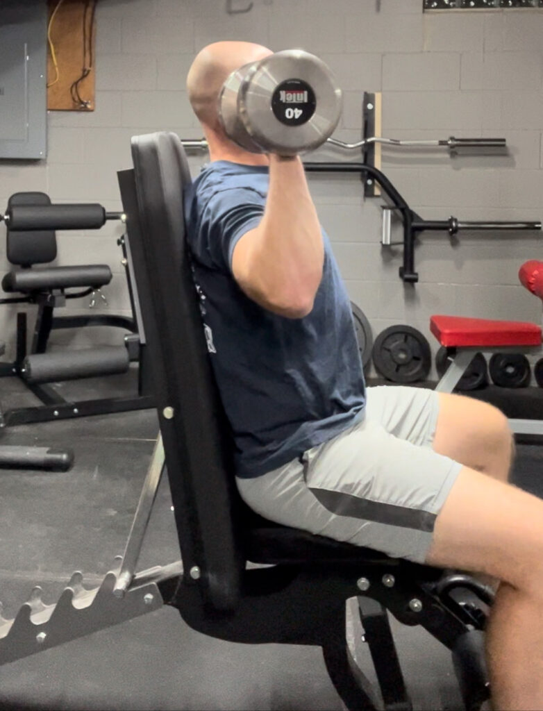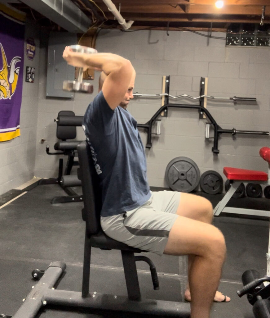 I found using the seated stationary bench allowed me to be more mobile in the overhead position.