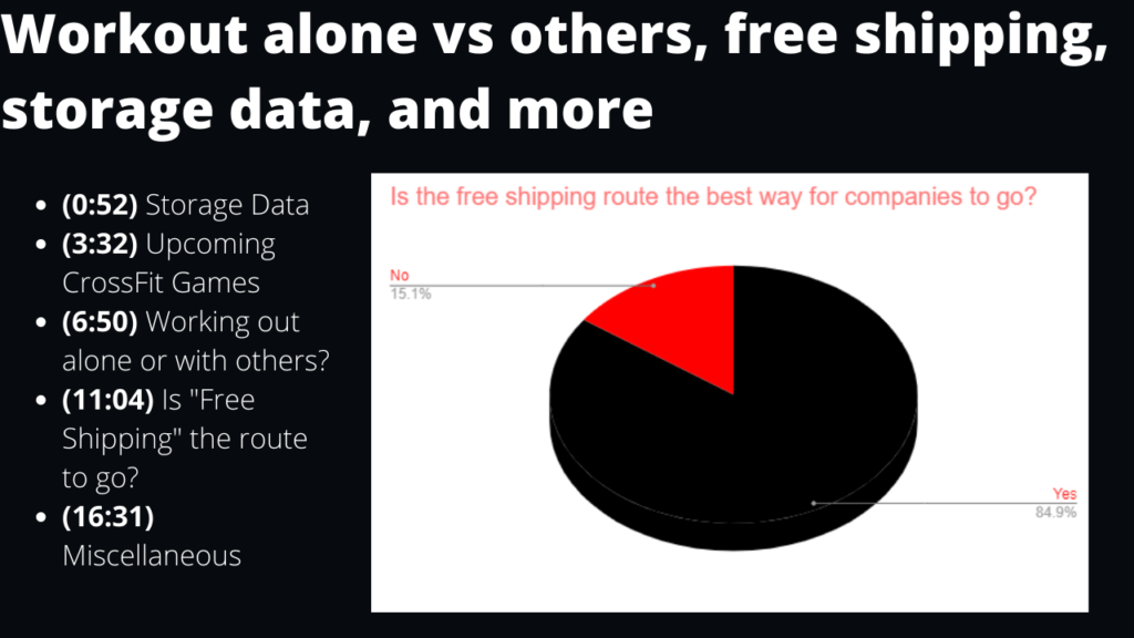 August 8, 2022 Workout alone vs with others, free shipping, storage data, and more Data this week includes some storage numbers, interest in the CrossFit Games, free shipping, and if you want to train by yourself or with…