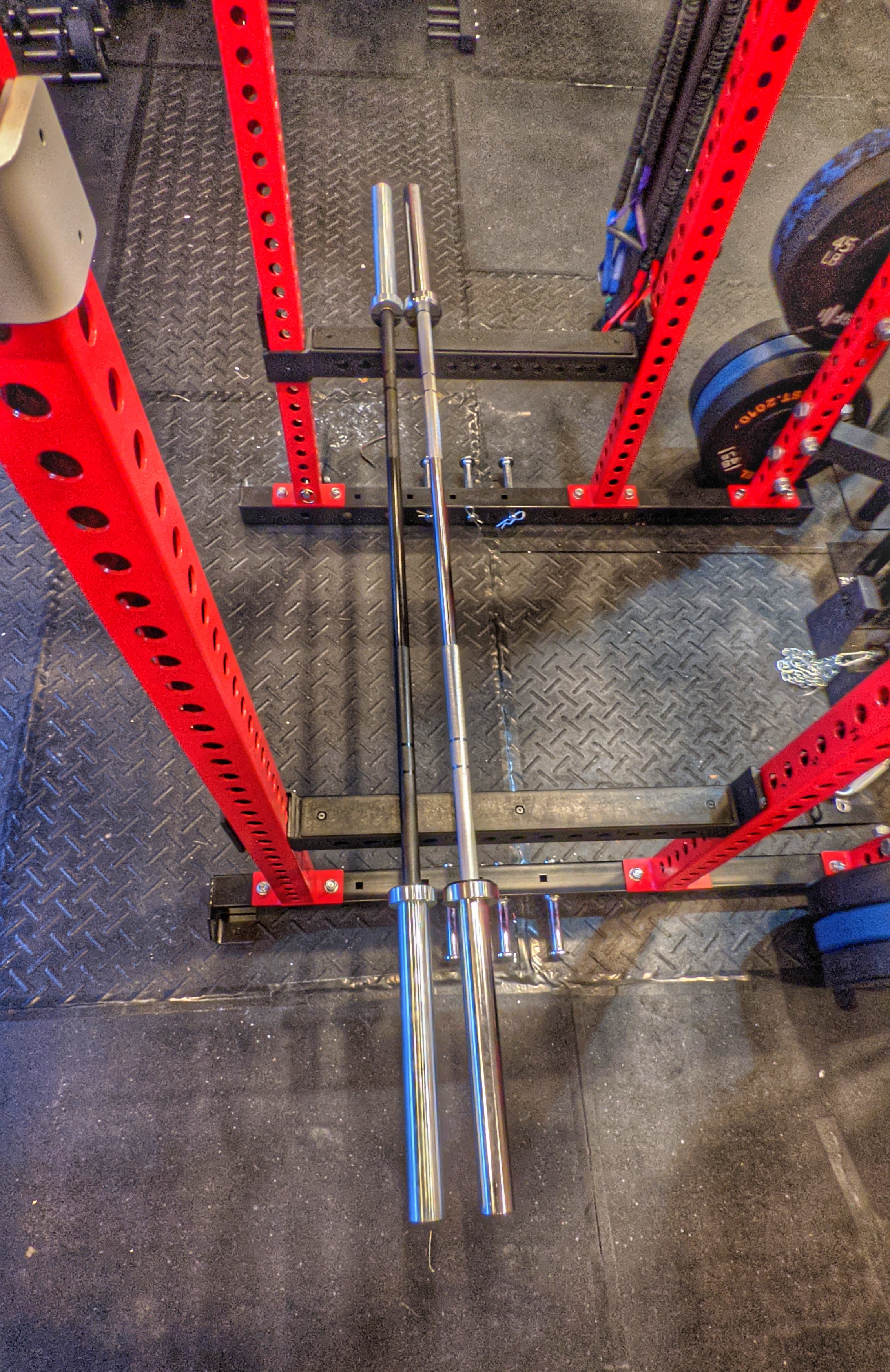 • Dual Knurl Marks for Weightlifting + Powerlifting are included.