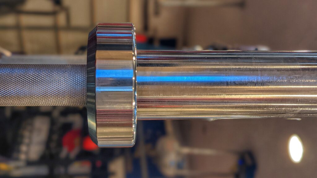 Overall, this is a very nice-looking barbell, and it does stand out a bit from others. Rather than being your typical square, it includes a slight slope that is unique to most other bars on the market. Plus, it includes an inner etched design on the collars that highlight the company name and weight of the bar. This is also uncommon amongst most other bars out there.