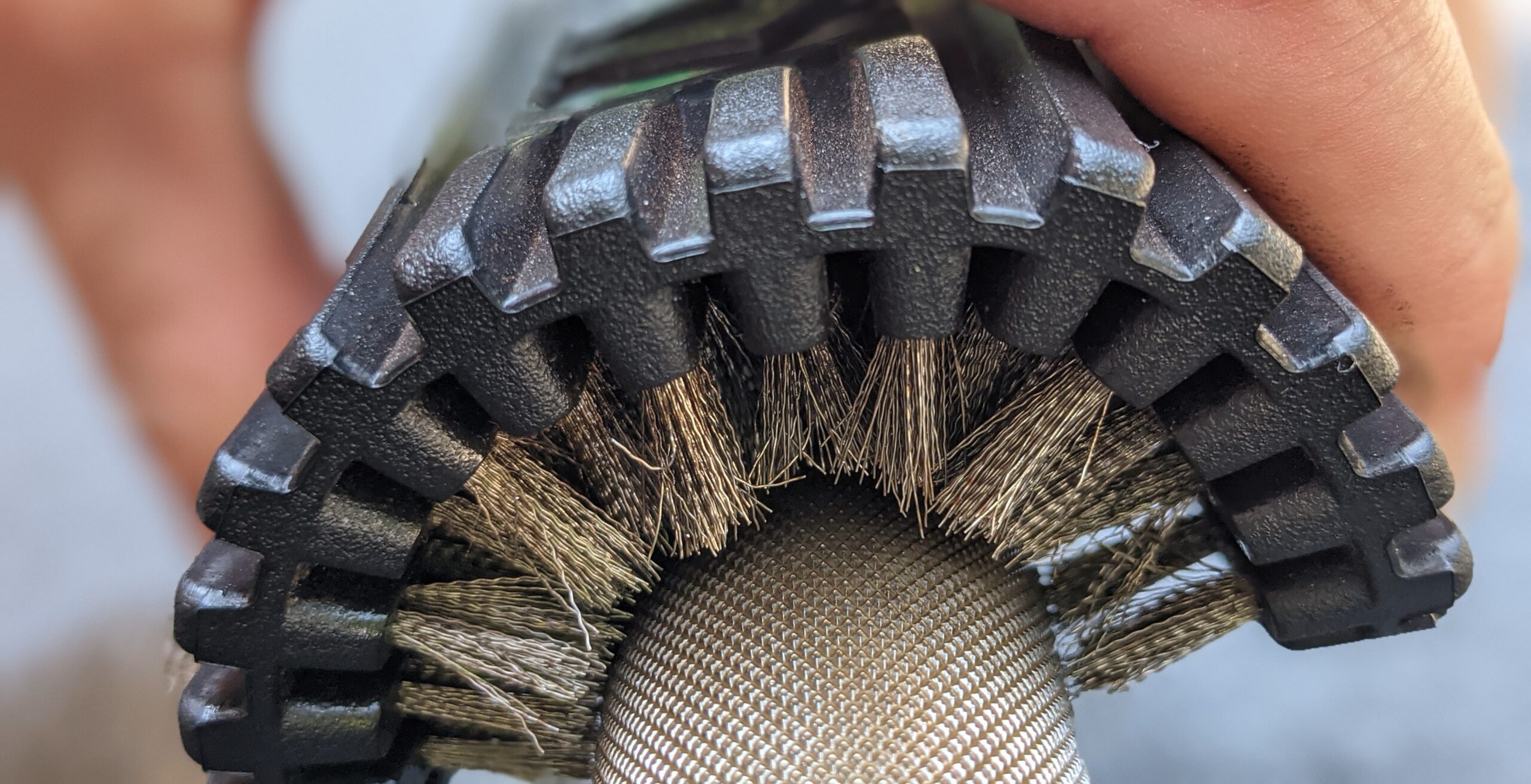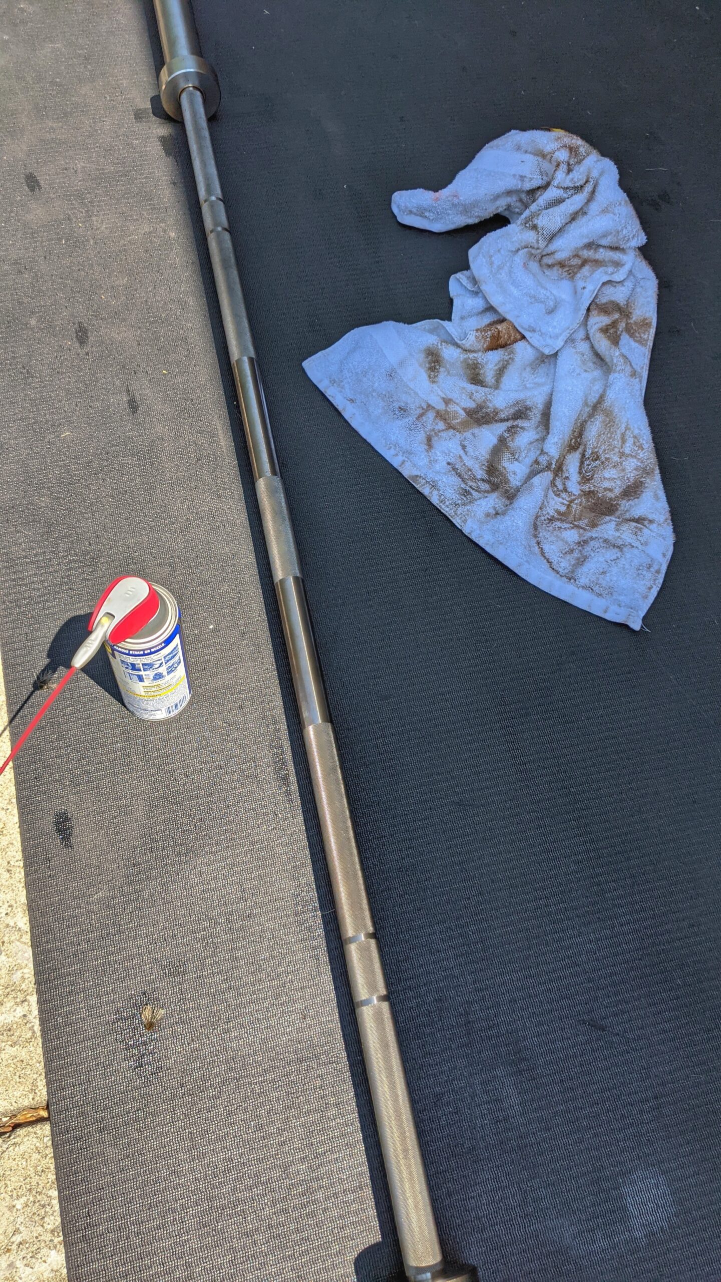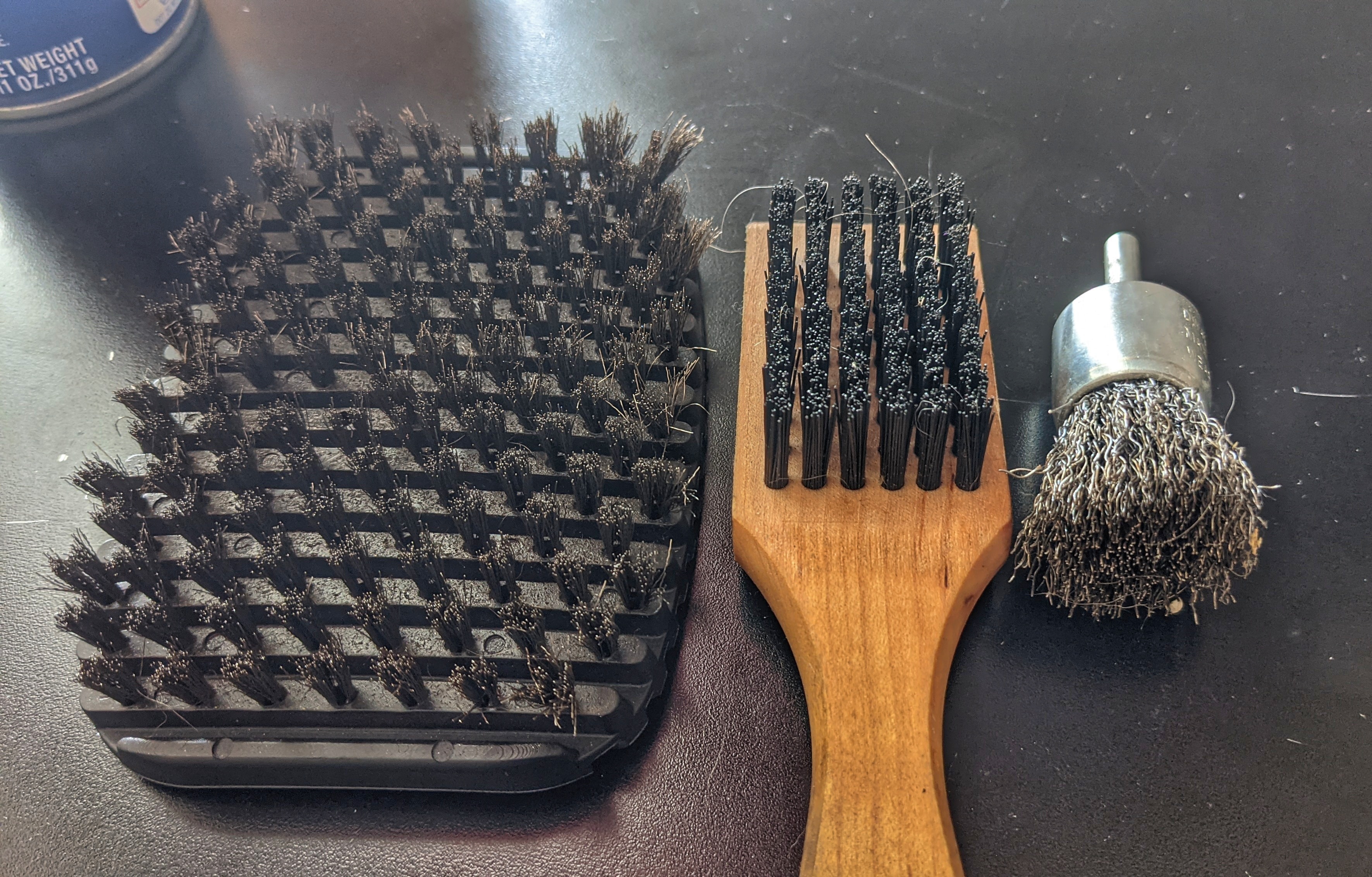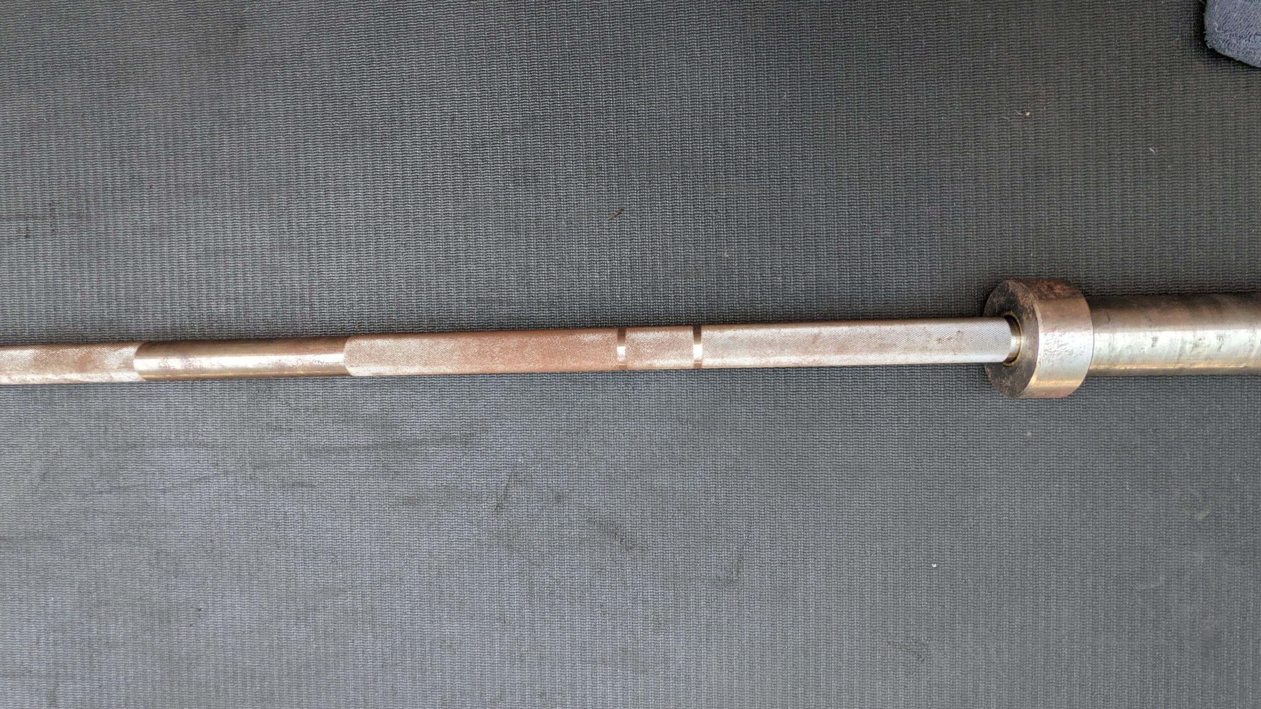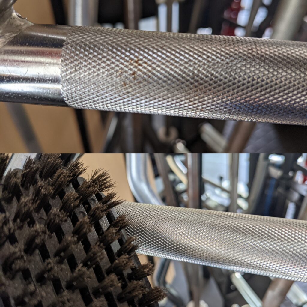 This brush seems to be the best way to maintain and clean up large areas of rust from a bare steel barbell. With steel bristles and a flexible wrap-around grip, you can get deep into the knurl to clear out whatever may be hiding in there.