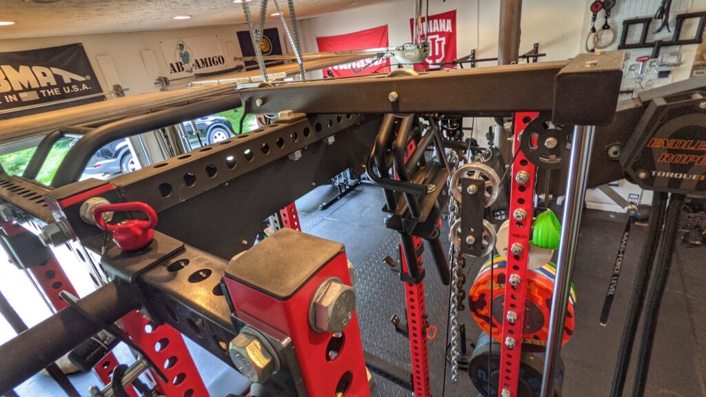 As previously mentioned, this helps bring back some of your favorite commercial gym movements into the rack. There is plenty of space within the rack within the rack for just about any movement you’d want to do. In addition, unless you have monolifts (with a wide lat pulldown bar) in or a barbell loaded up, there aren’t really any adjustments that need to be made. Depending on how you’ve set up the barbell, many supersets can still be done within the rack regardless. Low row/squats and lat pulldown/bench are good examples of possible supersets.