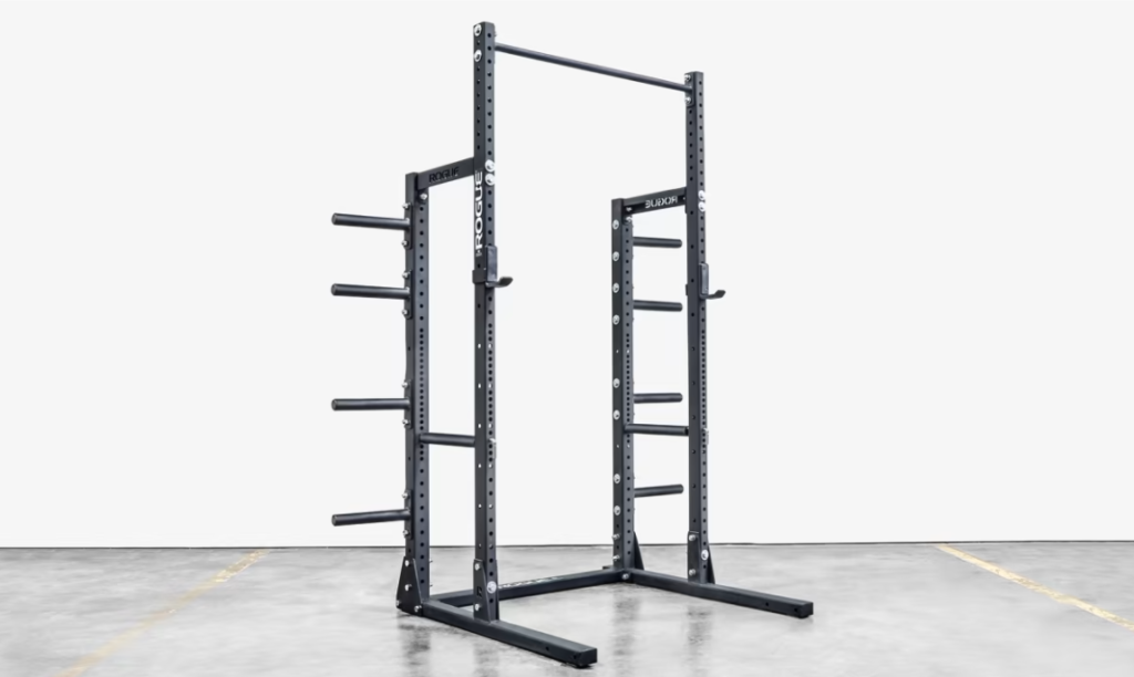A half rack is my personal preference. I own a Rogue SML-1 with the HR-2 Add-On with 70” posts selected for my short ceiling space. A half rack is a great in-between option. Maybe you don’t want to do every exercise under the sun within your rack, or maybe you don’t like the idea of squatting inside 4 posts. Depending on the size of your half-rack, you will not be limited in terms of the basic primary exercise movements, but you may not have the ability to use all the bells and whistles that you can use on a modern full rack.