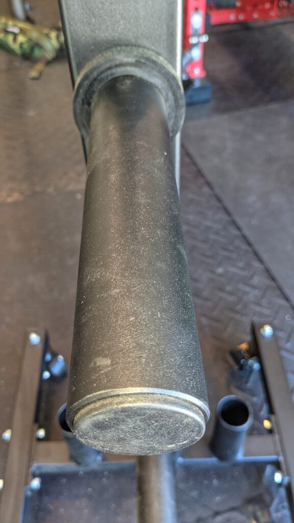 • Four 1″ weight pegs are added at the bottom. This is a good spot to store smaller plates. It would be nice to have a 2″ option because that is likely what most would put there. Nevertheless, the plates are still in a comfortable position here with just a little bit of lag.