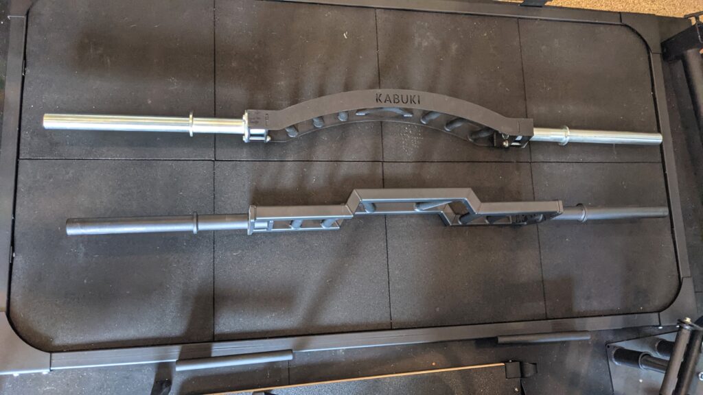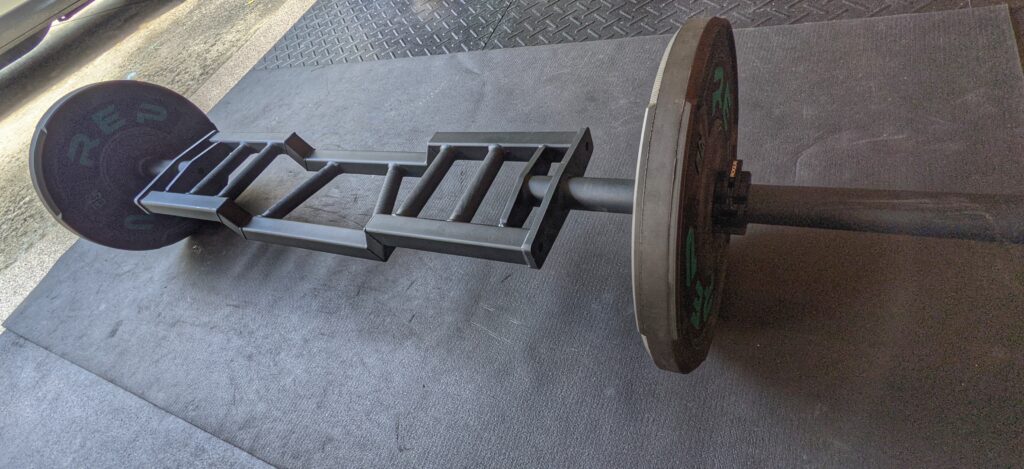 The cambered center allows for a greater range of motion and should help those with mobility issues. Without question, stress on the shoulder is less than a traditional barbell, and the additional 2″ makes a more significant difference than you’d initially think and forces you to drop your hands deeper than when using a traditional barbell.