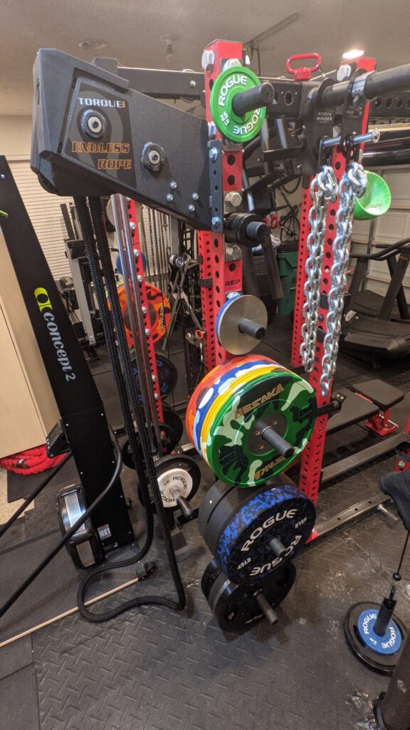 This unit was built exceptionally well and used the same sort of technology as the popular M1 Tank, another sweet piece of equipment offered by Torque. With 4 different resistance levels, it’s straightforward to use, and the overall construction is sturdy. It sits rock solid upon the power rack shown in these pictures. It’s also worth noting there is a 10-year warranty on the frame, 1 year on parts, and 90 days on miscellaneous items.